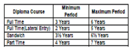 The minimum and maximum period for completion of Diploma Courses are as given Below: